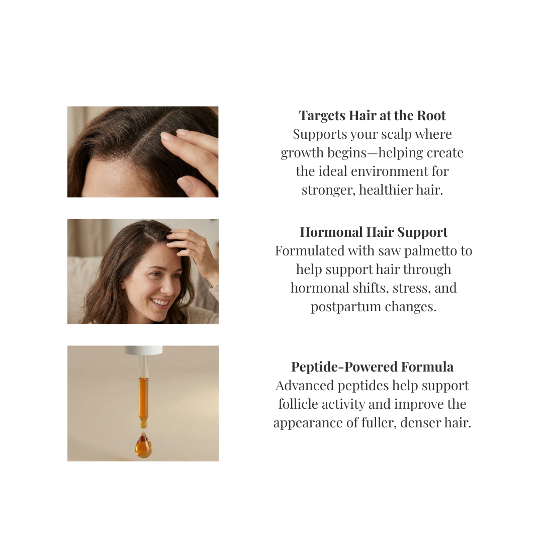 Designed for hormonal shifts, postpartum changes, and stress-related shedding.